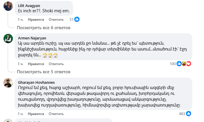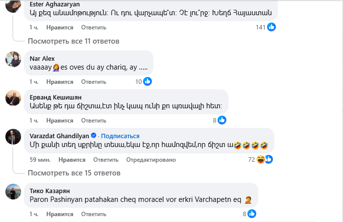 Սակայն ավելի շատ հայհոյանք ու վիրավորանք Փաշինյանը «վաստակել է» հենց իր գրառման տակ։
