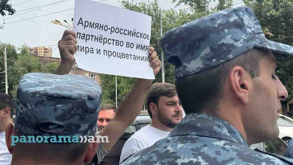 ԱԺ դիմաց բացի արևմտամետներից ակցիա են իրականացնում նաև ռուսամետ քաղաքացիները։ Արևմտամետներն այստեղ են ԵՄ դրոշներով, Ռուսաստանին դատապարտող գրություններով ցուցապաստառներով, իսկ ռուսամետները՝ ՌԴ դրոշներով, հայ-ռուսական բարեկամության մասին գրառումներով ցուցապաստառներով։