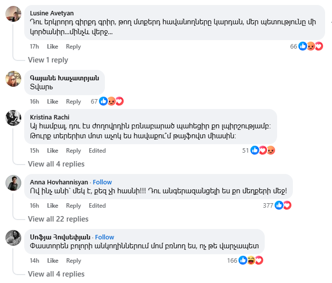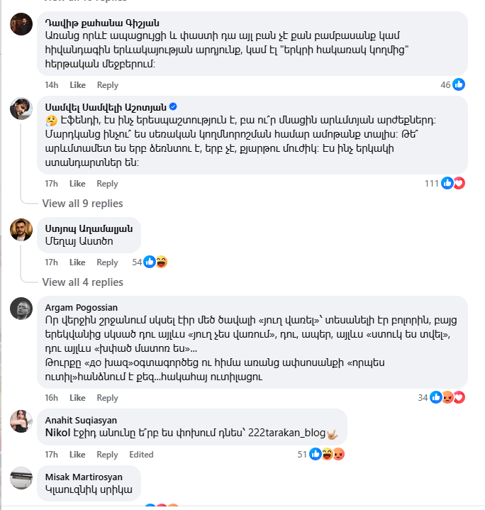 Yerevan.Today-ը հրապարակում է գրառումների մի չնչին մասը։