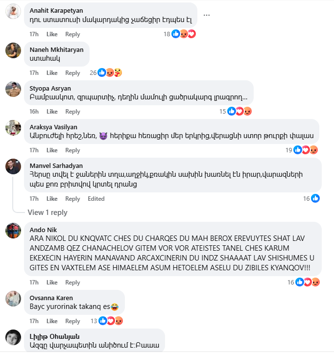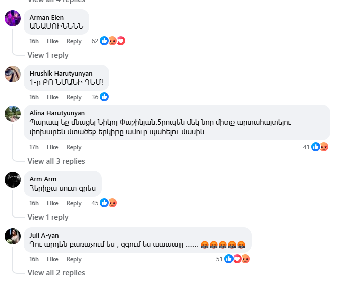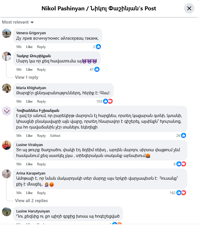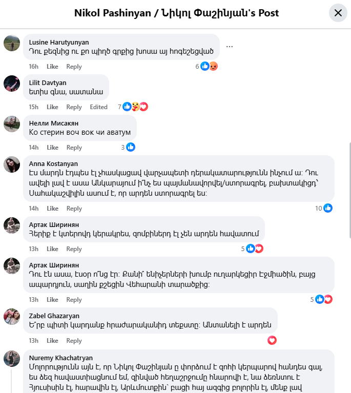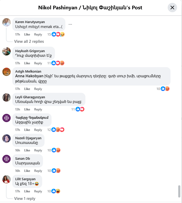 18+․ Երբ ֆեյքերը քնած են․ Փաշինյանի գրառման տակ շուրջ 1500 մեկնաբանություն է, գրեթե բոլորը՝ բացասական