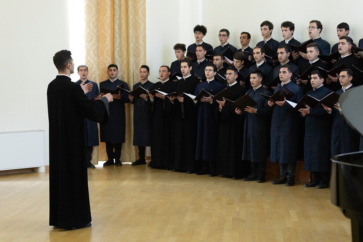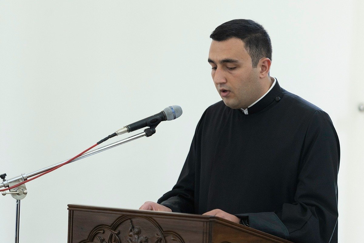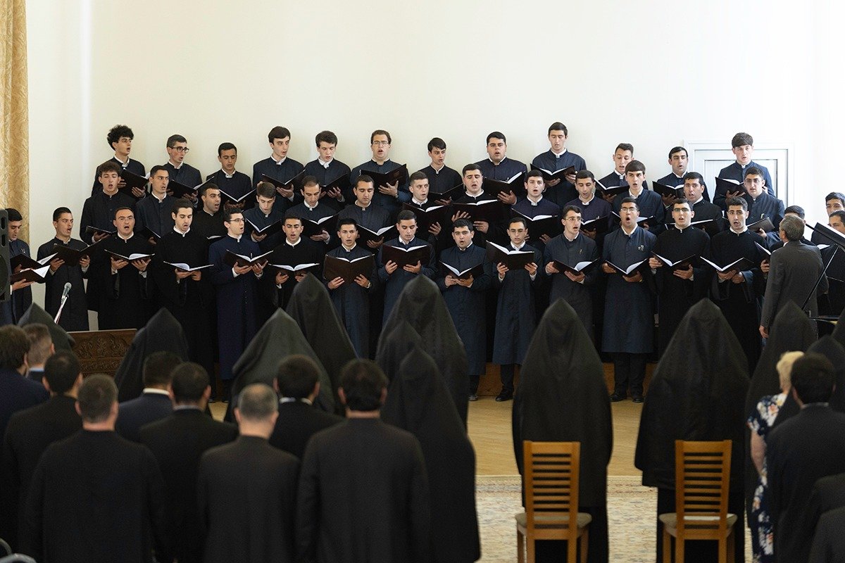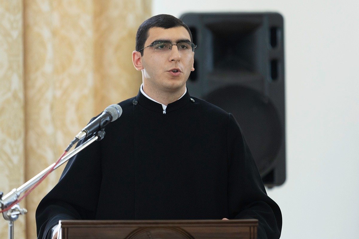 Գևորգյան հոգևոր ճեմարանի երգչախմբի կատարումներից հետո դասախոսների անունից ներկաներին խոսք ուղղեց պ․գ․թ․ Ավետիս Հարությունյանը, իսկ ուսանողության անունից սրտի խոսք ասաց 6-րդ լսարանի սան Բարեշնորհ Արման սարկավագ Բաղդասարյանը։