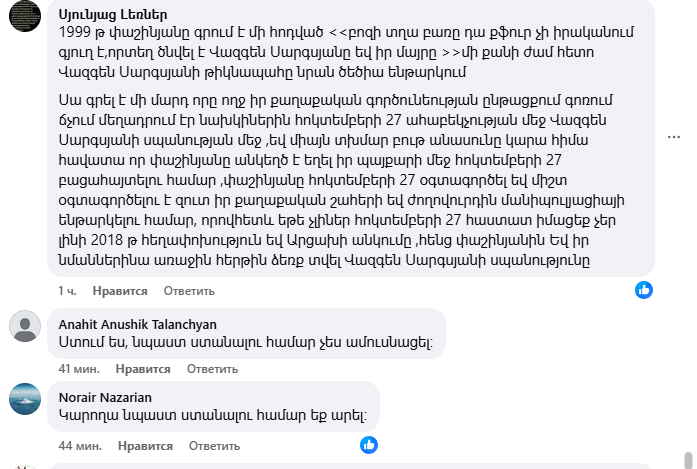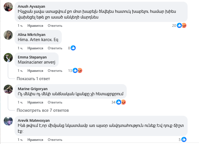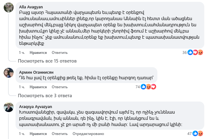 Yerevan.Today-ը հրապարակում է բազմաթիվ մեկնաբանություններից մի քանիսը։
