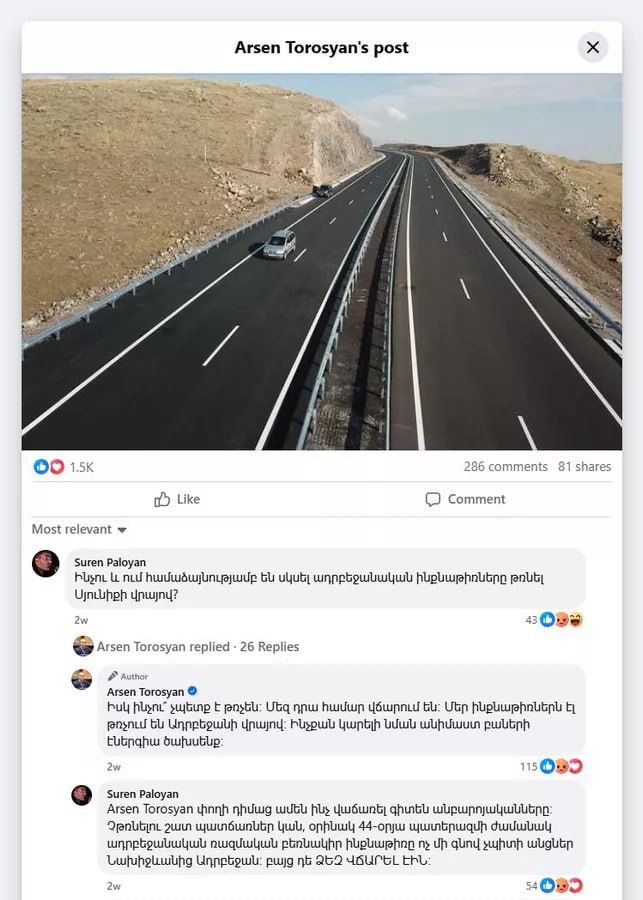 «Իսկ ինչո՞ւ չպետք է թռչեն։ Մեզ դրա համար վճարում են: Մեր ինքնաթիռներն էլ թռչում են Ադրբեջանի վրայով։ Ինչքա՞ն կարելի է նման անիմաստ բաների վրա էներգիա ծախսել», — գրել է Թորոսյանը։