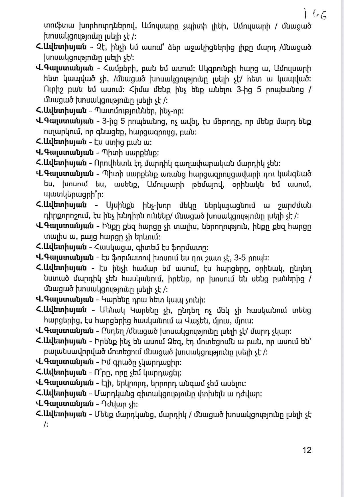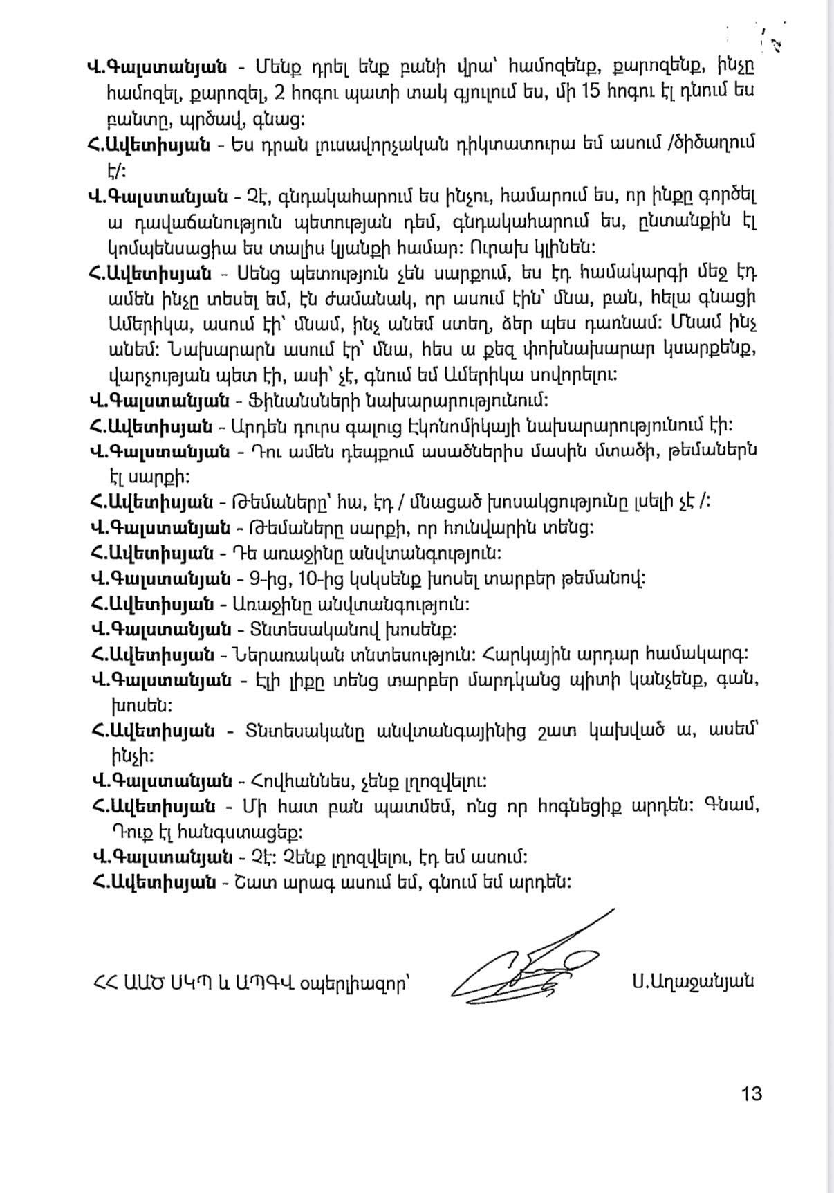 - ԱԱԾ-ի սղագրած նյութը (կից երկու նկարները), նաև որի հիման վրա հարուցվել է գործը: