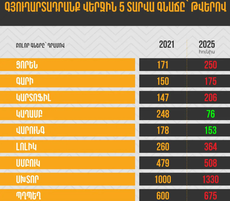 Գյուղարտադրանքի վերջին 5 տարվա գնաճը՝ թվերով․ ինֆոգրաֆիկա