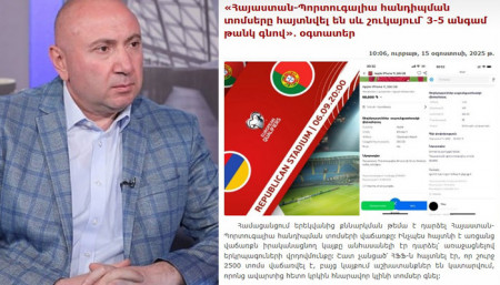 «Արցախը ծախողը, Սյունիքի տարածքը ծախողը, Հայաստան-Պորտուգալիա ֆուտբոլային հանդիպման տոմսերը կոռուպցիոն տրամաբանությամբ ծախելն ի՞նչ մի զարմանալու բան է։ Ի դեպ, տոմսերն արդեն հայտնվել են «սև» շուկայում։ Շատ բարձր գներով։ Թալանելը նորաձև է»։
