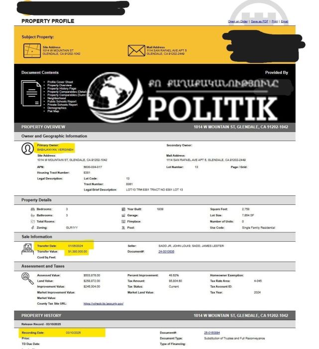 Բաբաջանյանը ԱՄՆ-ում շքեղ առանձնատուն է գնել․ որտեղի՞ց 1․3 մլն դոլար