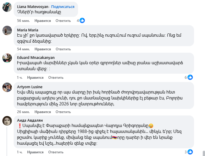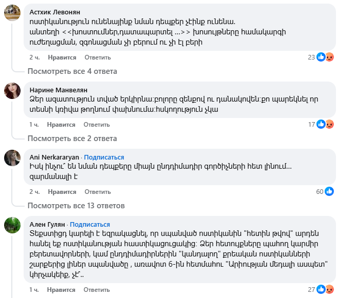 Yerevan.Today-ը առանձնացրել է բազմաթիվ բացասական մեկնաբանություններից մի քանիսը։