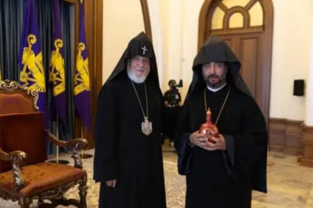 Նոր էինք մտել Տաճար, երբ հանկարծ ներս մտավ Վեհի գավազանակիրը՝ ինձ և մի քանի հոգևոր եղբայրներիս շտապ հրավիրելով Վեհարան՝ Հայրապետի մոտ։ Երբ ներս մտանք, Հայոց Հայրապետը նորություններով անհանգստությամբ հետևում էր փողոցում տեղի ունեցող իրադարձություններին։ Ն. Փաշինյանին ձերբակալել էին, և ցուցարարները վրդովված ու շիկացած մթնոլորտում այս ու այն կողմ էին քայլում՝ պատրաստվելով տեղափոխվել Շենգավիթի ոստիկանության բաժանմունքի առջև՝ Ն. Փաշինյանին ազատելու պահանջով, քանի որ լուր էր տարածվել, թե վերջինս այնտեղ է ձերբակալված։