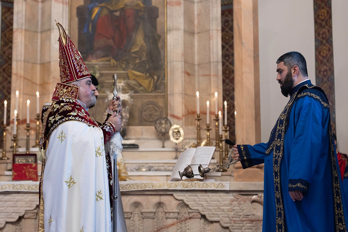 Պատարագիչն էր Մայր Աթոռի «Գարեգին Ա» կրթական կենտրոնի տնօրեն Գերաշնորհ Տ․ Վահան եպիսկոպոս Հովհաննիսյանը։