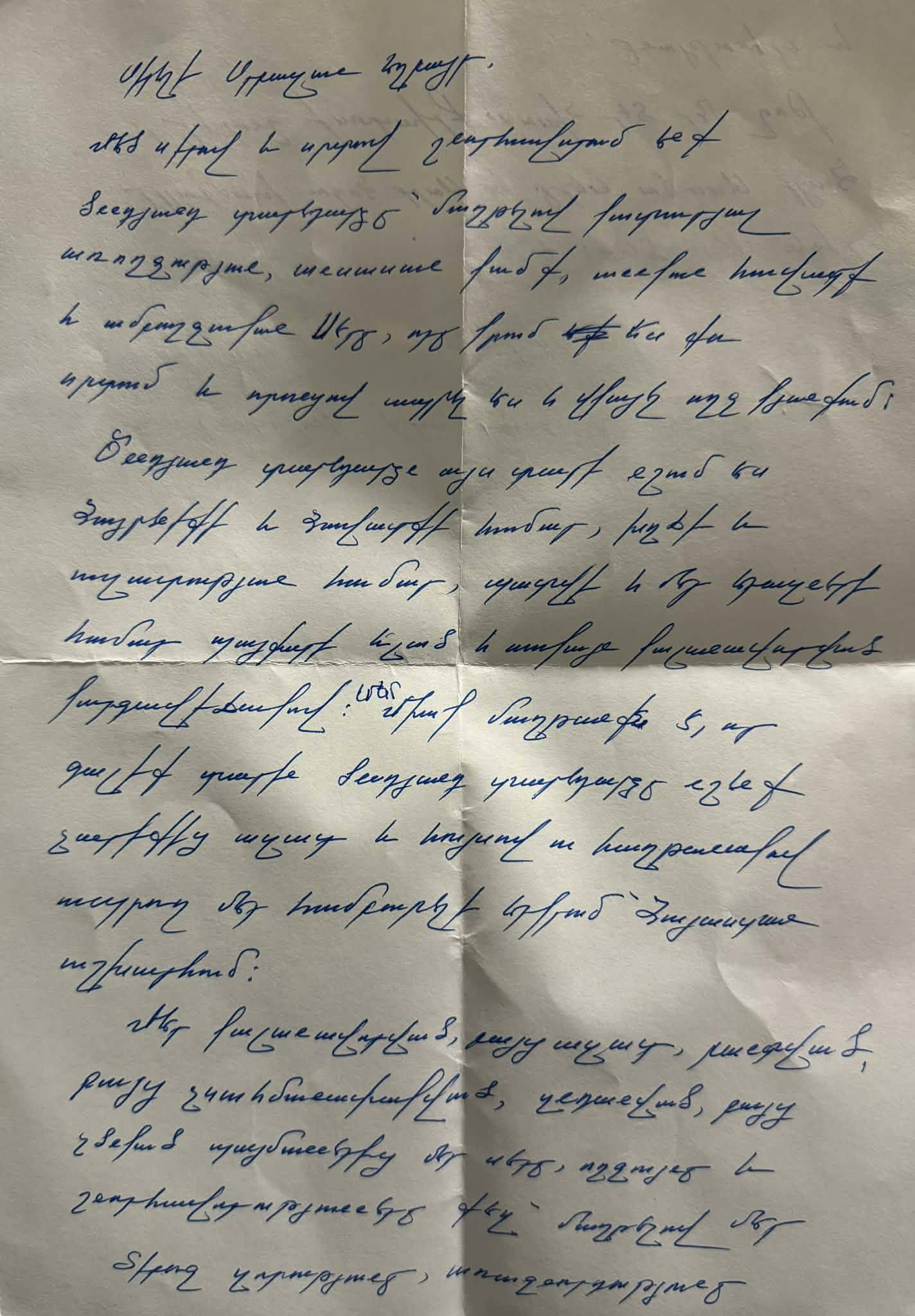 Մեր կալանավորված, բայց ազատ, բանտված, բայց չսահմանափակված, զնդանված, բայց չծնկած պայմաններից մեր սերը, ողջույնը և շնորհավորությունները քեզ` մաղթելով մեր Տիրոջ զորությունը, առաջնորդությունը և օրհնությունը: