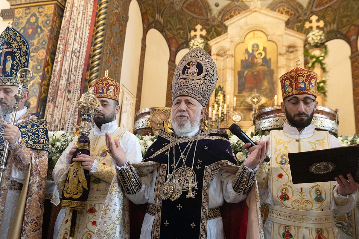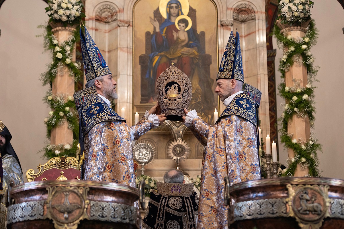 Սրբազան արարողությանը Հայոց Հովվապետին որպես առընթերականներ սպասավորում էին Գերաշնորհ Տ. Մուշեղ եպիսկոպոս Բաբայանը և Գերաշնորհ Տ․ Դանիել եպիսկոպոս Ֆընտըգյանը։