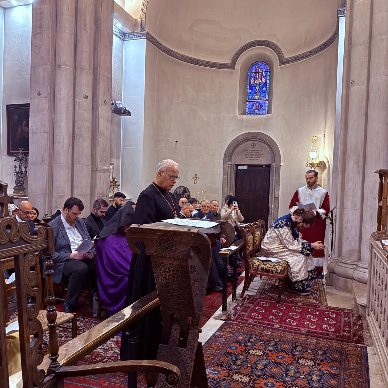 Արարողության սկզբում ներկաներին ողջունեց Մեծ Բրիտանիայի և Իռլանդիայի հայոց թեմի առաջնորդ Տ. Հովակիմ եպիսկոպոս Մանուկյանը։ Սրբազան Հայրը շնորհակալություն հայտնեց տարբեր եկեղեցիների ներկայացուցիչներին իրենց ներկայության և համերաշխության համար՝ առանձնապես ընդգծելով հայ ժողովրդի և Հայ Եկեղեցու կողքին կանգնելու կարևորությունը եկեղեցական կյանքի այս դժվարին ժամանակաշրջանում։