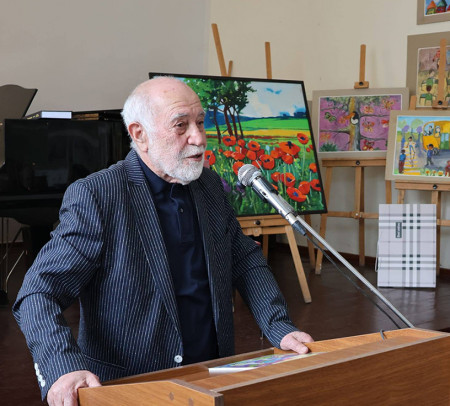«Հաճելի է երբ նման պատվի են արժանացնում կենդանության օրոք, ինչը նաև շատ պարտավորեցնող է, այն իմաստով, որ իմ կապը այս դպրոցի հետ էլ ավելի կսերտանա` վերածվելով լավ բարեկամության։ Կկազմակերպվեն վարպետացդասեր, ցուցահանդեսներ, կփորձեմ իմ փորձը փոխանցել ապագա գեղանկարիչներին: Այս պատվավոր իրողության համար առանձնակի զգացված եմ իմ գործնկերներից, ովքեր դպրոցի անվանակոչման հարցում առաջադրելեն իմ թեկնածությունը»,-շնորհակալություն հայտնելով ներկաներին,ասաց Վարպետը և ի նշան երախտագիտության, դպրոցին նվիրեց իր գործերից մեկը՝«Կակաչների դաշտ»յուղաներկով արված մեծ կտավը և երեք հատորից բաղկացած ստեղծագործությունների ալբոմ-գրքերը։