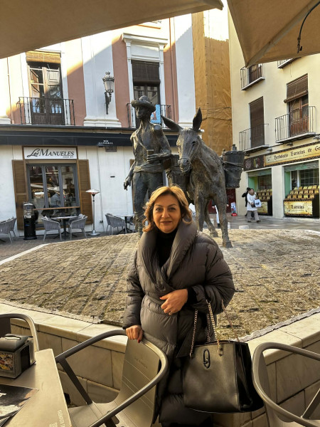 ՀԳ Նկարում` իմ հետեւի ֆոնին Դոն Քիշոտի արձանն է` հողմաղացների դեմ պայքարող (հուսով եմ` իմ պայքարը նույնքան անիմաստ չէ), ափսոս Անհաղթ աքլորի արձան չկա, որի ֆոնին մեծ սիրով կնկարվեի: Անհաղթ աքլորը` որպես համառ պայքարի ու վերջնական հաղթանակի հայկական սիմվոլ»։