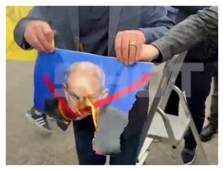 Նիկոլ Փաշինյանի դիմանկարն այրել են Մոսկովայի կենտրոնում Հայաստանի դեսպանատան մոտ տեղի ունեցած հանրահավաքի ժամանակ