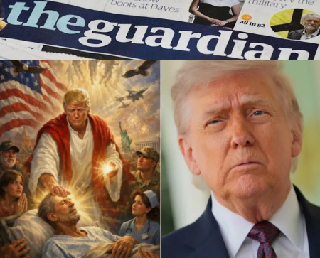 Սակայն չորեքշաբթի օրը Թրամփը հրապարակեց իր նոր լուսանկարը, որտեղ նա Հիսուսի գրկում է՝ հրեշտակային լույսով ողողված, ամերիկյան դրոշի ֆոնի վրա։