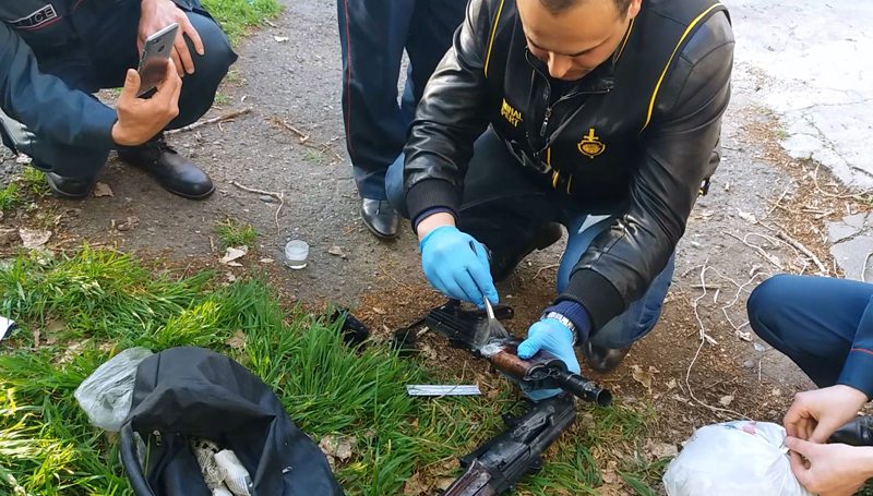 Ահազանգին արագ արձագանքած իրավապահները, դեպքի վայրի զննությամբ, հայտնաբերեցին սպորտային պայուսակը, որի մեջ 4 ինքնաձիգ կար, 8 պահունակ և տարբեր տրամաչափերի 274 փամփուշտ։ Նախնական տվյալներով՝ ինքնաձիգերը «Կալաշնիկովներ» են։