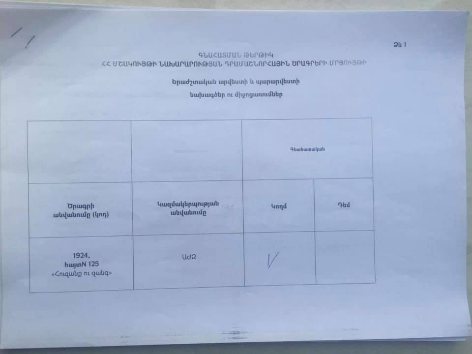 «ՀուԶանք ու Զանգ» ներկայացման ծախսերի հետքերով. տեխնիկական ծախսերը 330 000 դրամի փոխարեն կարող էին կազմել առավելագույնը 150 000 դրամ