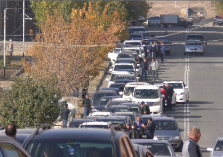 Ճարպիկ գյումրեցիները ավտոմաքսատան մոտ հերթի տեղերը վաճառում են 20 000 դրամով, մեջտեղներում՝ 10 հազարով
