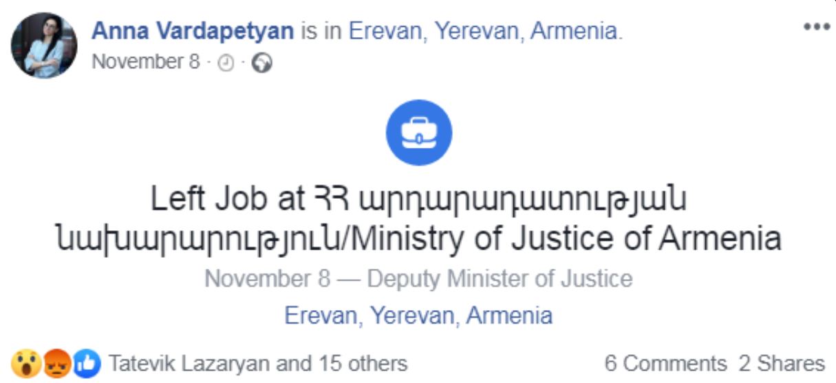 Նշենք, որ համապատասխան գրառում է իր ֆեյսբուքյան էջում արել նաև Աննա Վարդապետյանը։