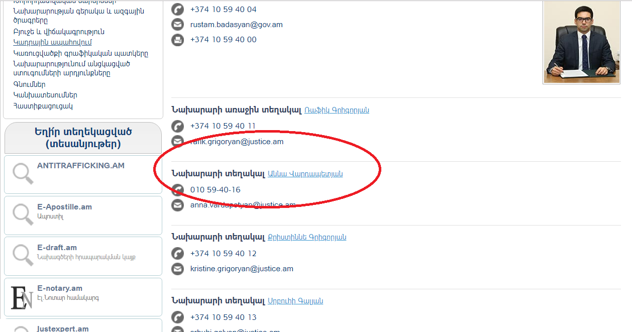 Արդարադատության նախարարության կայքից Աննա Վարդապետյանի անունը դեռ հանված չէ։