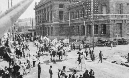 Պատմաբան Ռուբեն Շուխյանը սոցկայքի իր էջում գրել է. «Պատմական բացառիկ լուսանկար. 1919-ի ապրիլի 30-ին Երևանում տեղի ունեցած զորահանդեսը՝ ի պատիվ թուրք-թաթար հրոսակներից Կարսի և Նախիջևանի ազատագրմանը և Դաշնակիցների կողմից այդ երկու հայկական երկրամասերի ճանաչմանն իբրև ազատ, անկախ և ինքնիշխան Հայաստանի Հանրապետության անքակտելի մաս: Ռազմական շքերթին ներկա է եղել բրիտանական Սև ծովյան զորաբանակի հրամանատար զոր. Ջորջ Միլնը: Դիմացից սպիտակ ձիու վրա՝ Երևանի զինվորական պարետ Արշավիր Շահխաթունին է, իսկ ետևում հայոց հեծելազորի հեծյալներն են՝ Դաշնակից տերությունների դրոշներով: Շքերթն Աբովյան փողոցից իջնում է դեպի Երևանի Կենտրոնական հրապարակ (ներկայիս՝ Հանրապետության), աջ կողմում՝ ներկայիս «Առնո Բաբաջանյան» համերգասրահի շենքն է: