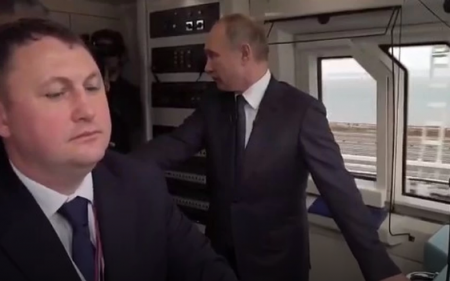 Պուտինը առաջիններից էր, ով գնացքով անցել է կամուրջի վրայով մեքենավարի հետ միասին: