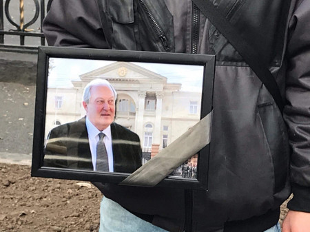 «Քաղաքացիական գիտակցություն» ազատական հասարակական կազմակերպության նախագահ Նարեկ Սամսոնյանն ակցիա է իրականացնում ՀՀ Նախագահի նստավայրի դիմաց։ Այս մասին տեղեկանում ենք նրա ֆեյսբուքյան էջից։ Սամսոնյանը կիսվել է ուղիղ տեսանյութով՝ այն վերնագրելով «Երկարատև ծանր հիվանդությունից հետո այսօր մահացավ ՀՀ Նախագահի ինստիտուտը... Մասնակցում ենք Հոգեհանգստի արարողությանը Բաղրամյան 26-ում»։
