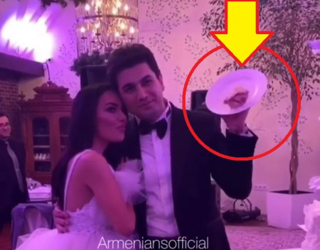 Համացանցում է հայտնվել Արփի Գաբրիելյանի և Միհրան Ծառուկյանի հարսանիքից մի զվարճալի դրվագ: Զույգը որոշում է լուսանկարվել, արդյունքում Միհրանի պարզած ափսեով տորթն ընկնում է գետնին: Միհրանի դեմքը շատ զվարճալի է: