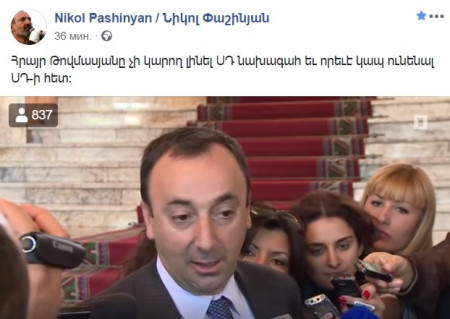 Ո՞նց հասկանում եմ, Հրայրի դեմ այս քարոզչական ռոլիկի սցենարն էլ է Նիկոլը գրել, սրա համար էլ առավոտ կանուխ ճտցրել է ֆեյսի պատին։ Աչքիս դրա համար էլ սաղ գիշերը քնած չի լինի...