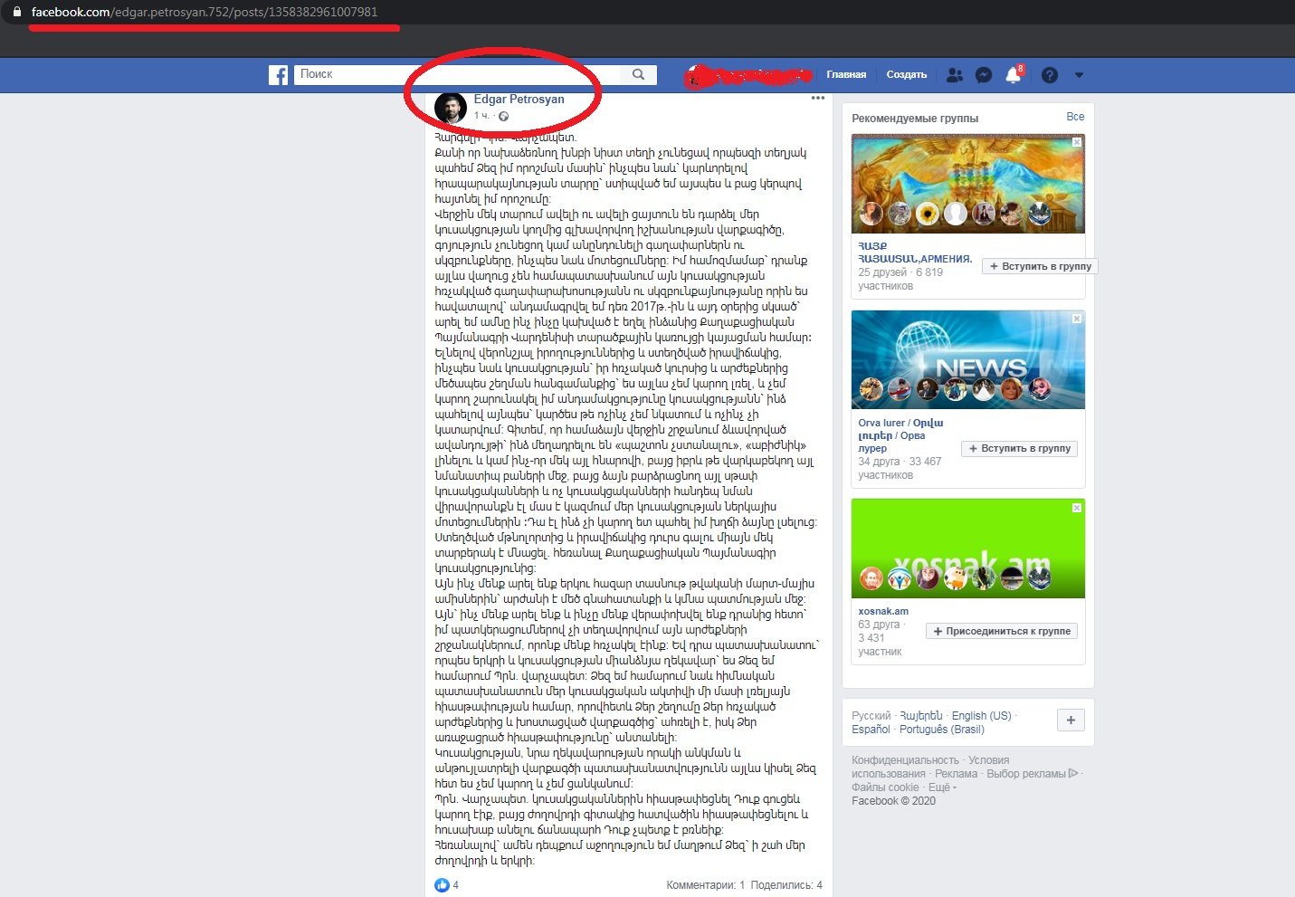 Էդգար Պետրոսյանի ֆեյսբուքյան էջից: