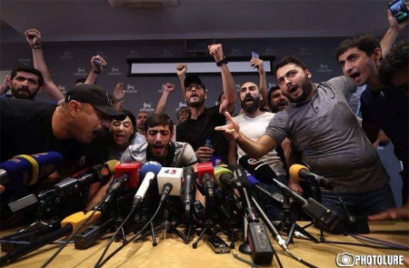 Ցուցարարները, որոնց շարքերում գլխավոր դերակատարումը, ինչպես արդեն հետո պարզվեց, վերապահված էր, այսպես ասած՝ «սորոսական» ու ՔՊ-ական ակտիվին, «գրավեցին» ասուլիսի սրահը, շրջափակեցին սեղանը, լուսանկարվեցին, ու այդ հայտնի լուսանկարը շատ արագ տարածվեց լրատվամիջոցներով ու ֆեյսբուքյան գոնե թե հայկական տիրույթով: