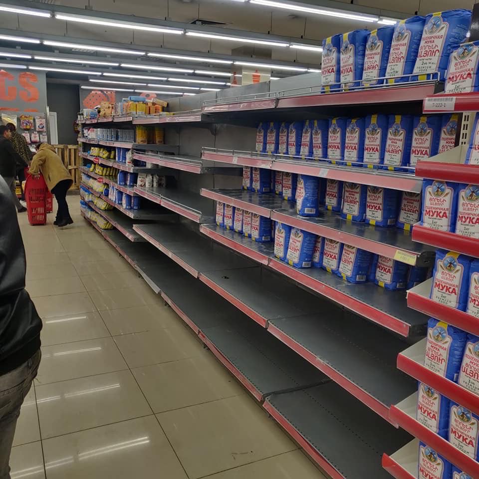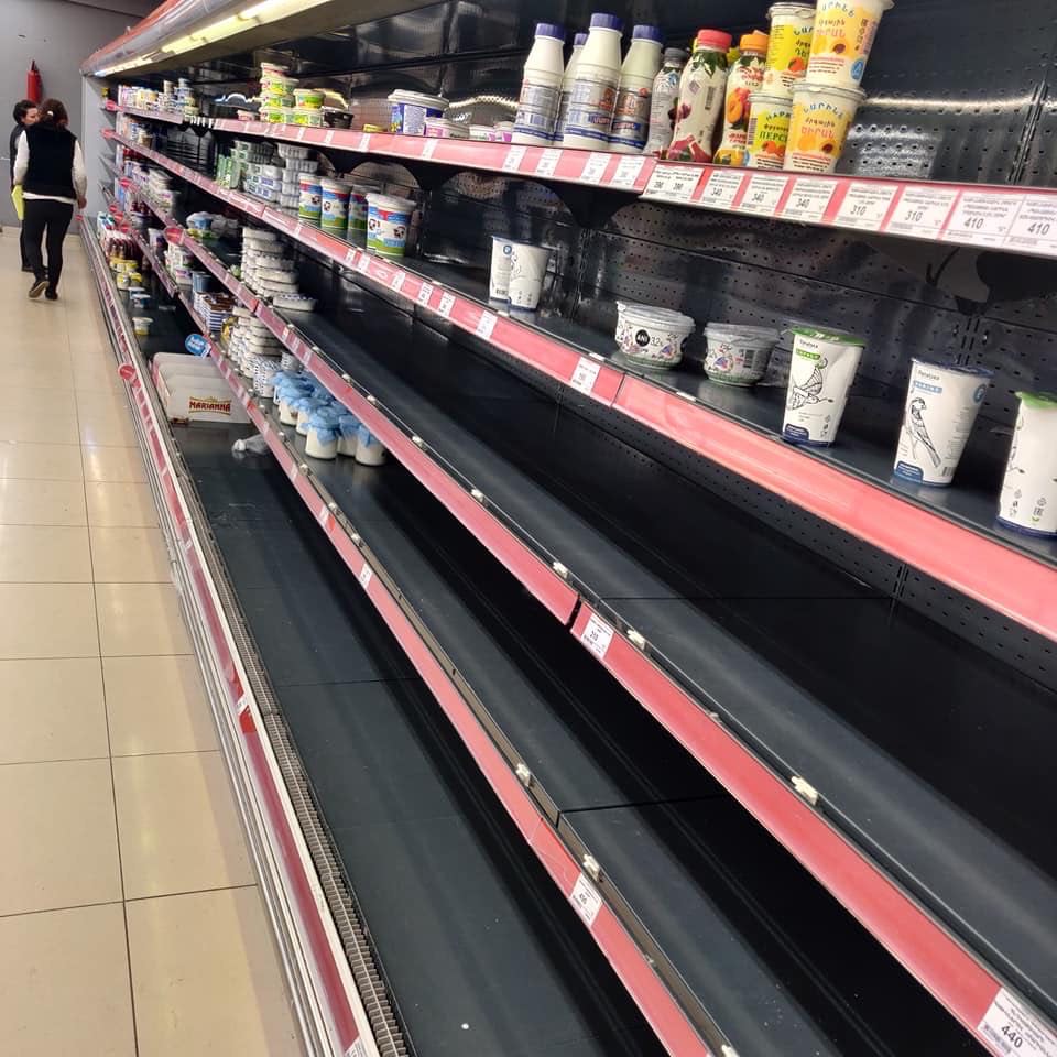 Երևանի մի շարք խանութների որոշ ցուցափեղկեր կիսադատարկ են. կորոնավիրուսի պատճառով մարդիկ մեծ քանակի սնունդ են գնում. ֆոտոշարք