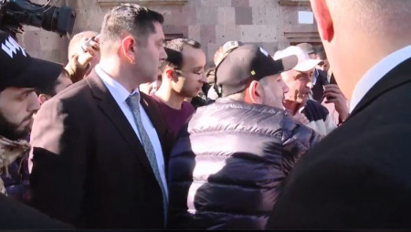 Նիկոլ Փաշինյանը իջել է բեմից, մոտեցել վերջինիս՝ փորձելով հանգստացնել նրան. «Ես չեմ եկել խանգարելու, չեմ եկել պատերազմելու,- Փաշինյանին ասել է տղամարդը,- իմ միկրոֆոնը գողացել են, ազատ խոսքից զրկված քաղաքացի եմ»։