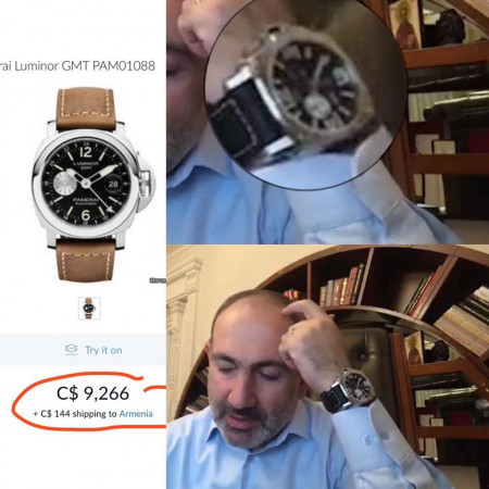 Մոռանալով խուճապ չտարածելու հորդորը, Փաշինյանը նախ հայտարարեց, որ վարակվածների թիվը նախորդ օրվա համեմատ ավելացել է 34-ով (աղբյուրը՝ https://www.facebook.com/nikol.pashinyan/videos/836957460129950), ապա, որ կորոնավիրուսը կարող է տևել մեկ տարուց ավել։ Այդ տխուր պատկերը ներկայացնելուն զուգահեռ նա չխորշեց ցուցադրել իր՝ ավելի քան 9000 $ արժողությամբ նոր ժամացույցը։ Ու դա ցուցադրում էր այս օրերին նույնիսկ պաշտպանվելու համար անհրաժեշտ սովորական դիմակներ ու սննդամթերք ձեռք բերել չկարողացող քաղաքացիներին։