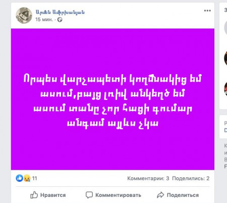 Միհրդատ Մադաթյանի ֆեյսբուքյան էջից