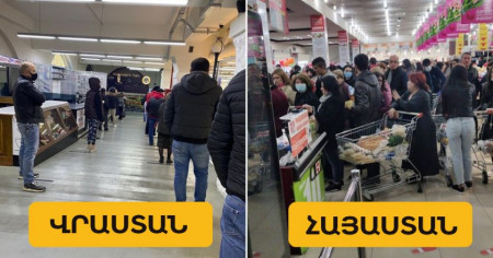 Նկարներում Հայաստանի և Վրաստանի խանութի հերթերն են: Տարբերությունն ակնհայտ է: Ու զարմանալիորեն պարզ է դառնում, որ ոչ միայն Վրաստան պետությունն էր պատրաստ դիմագրավել այս մարտահրավերին, այլև հասարակ քաղաքացիները նույնպես, ովքեր տարրական սոցիալական պատասխանատվություն ունեն միմյանց նկատմամբ: