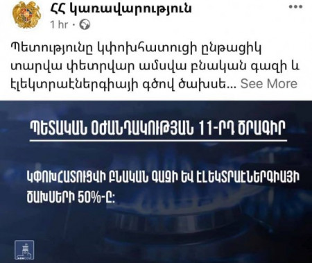 Հնչեղ, ականջ ծակող վերնագիր. «Պետությունը 50 տոկոսով կփոխհատուցի գազի եւ էլեկտրաէներգիայի վարձավճարները»։