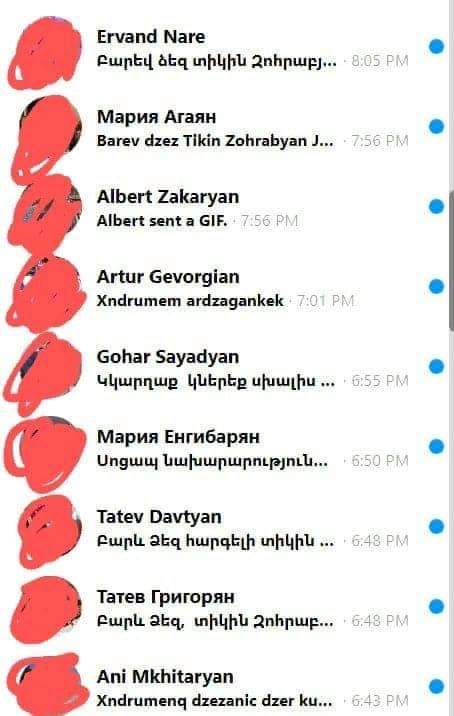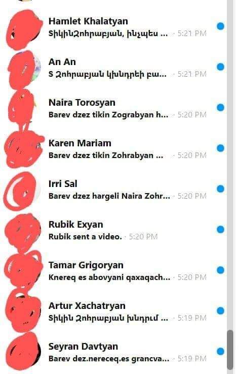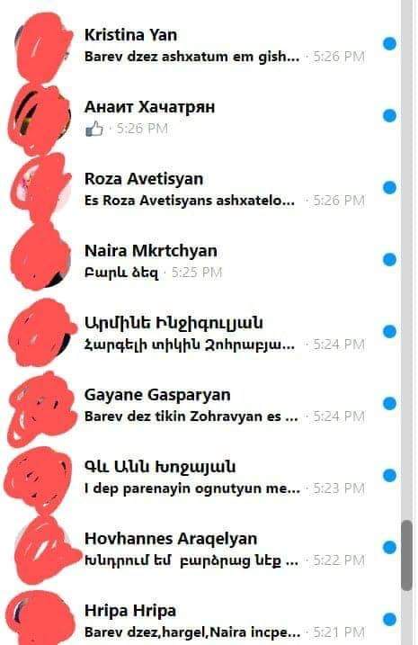 Իսկ որպեսզի վստահ լինեք, թե օրական ինչ ծավալի է նամակների քանակը, տեղադրեմ միայն մեսենջերով, միայն վերջին 2-3 ժամվա ընթացքում մեր քաղաքացիներից ստացածս դիմումները: