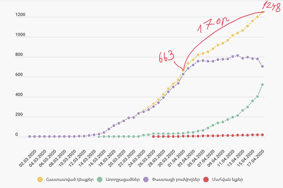 «Կորոնավիրուսային հիվանդության դեպքերի կրկնապատկման տեմպը այս պահին 17 օր է: Եթե այս տեմպը պահպանվի, ապա մայիսի 4-ին մենք կունենանք 2500 դեպք, իսկ մայիսի 21-ին 5000 դեպք: