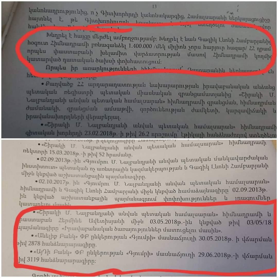Նոր բացահայտումներ Շիրակի պետական համալսարանի թալանից. 1 միլիոն 400 հազար դրամ փաստաբանի վարձավճար (լուսանկար)