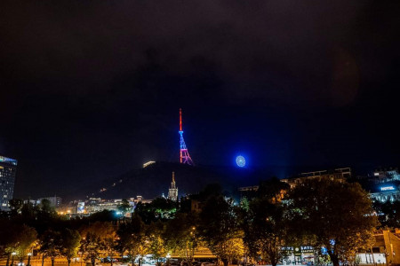 Նոր կորոնավիրուսի դեմ պայքարի շրջանակներում բարեկամ Վրաստանն իր աջակցությունն է հայտնում Հայաստանին՝ Թբիլիսիի հեռուստաաշտարակը ներկելով Հայոց եռագույնի գույներով։ Լուսանկարը հրապարակվել է Վրաստանում ՀՀ դեսպանության էջում: