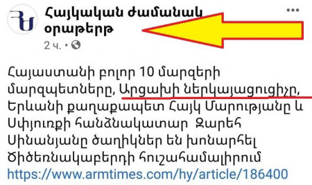 Փաշինյանի Հայկական ժամանակ թերթը տեսեք ի՞նչ է գրել. «Արցախի ներկայացուցիչ»