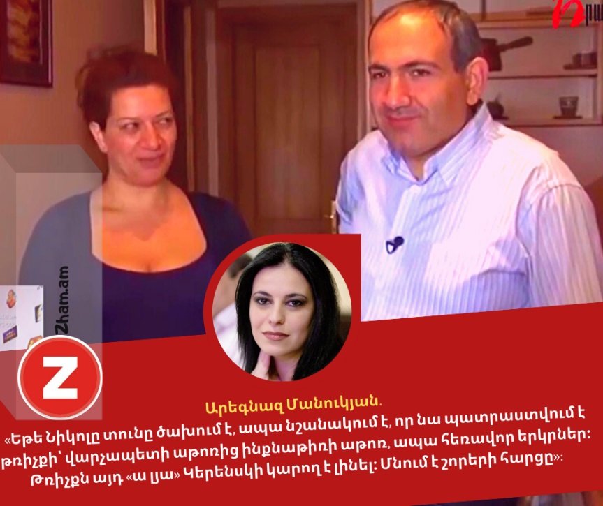 Արեգնազ Մանուկյան.«Եթե Նիկոլը տունը ծախում է, ապա նշանակում է, որ նա պատրաստվում է թռիչքի՝ վարչապետի աթոռից ինքնաթիռի աթոռ, ապա հեռավոր երկրներ։ Թռիչքն այդ «ա լյա» Կերենսկի կարող է լինել»: