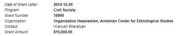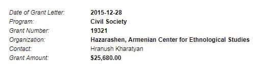 Հայոց ցեղասպանության թանգարան-ինստիտուտի հոգաբարձուների կազմում ընդգրկված սորոսական Հրանուշ Խառատյանի ստացած գրանտները