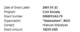 Կից ներկայացնում եմ օլիգարխ Սորոսի վարձկան Հրանուշ Խառատյանի սորոսական գրանտները։ ՈՒՇԱԴՐՈՒԹՅՈՒՆ, Հրանուշ Խառատյանը Սորոսից փողերը ստացել է «Հազարաշեն» ՀԿ-ով: