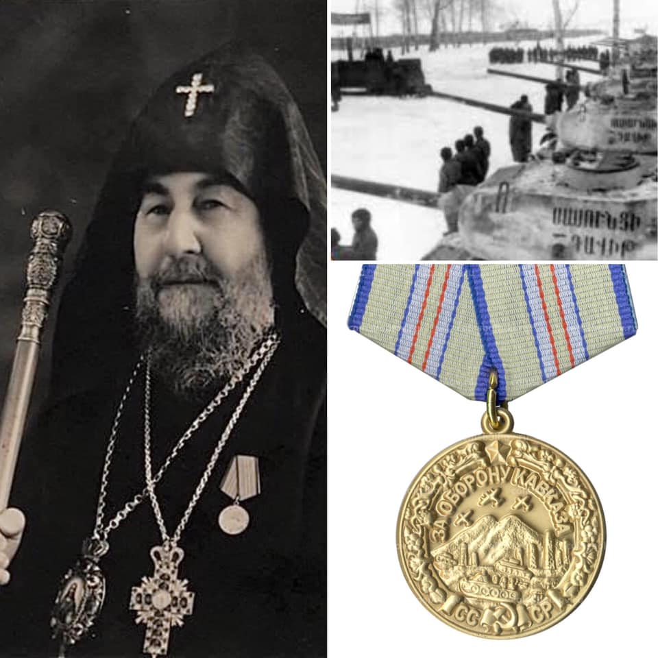 Մեծ Հայրենական պատերազմի բռնկումից հետո կաթողիկոսական տեղապահը անմիջապես կոնդակով դիմեց բոլոր հայերին՝ հայրենիքում և սփյուռքում, կոչ անելով միահամուռ ուժերով պայքարել ֆաշիզմի դեմ։ Հայ Եկեղեցու հովանու ներքո սփյուռքում կազմակերպվեց հանգանակություն, հավաքված գումարով ու Մայր Աթոռի նվիրատվությամբ ձևավորվեցին «Սասունցի Դավիթ» երկու տանկային շարասյունները (նախ՝ 21, ապա՝ ևս 22 տանկ), որոնք 1944 թվականից Կարմիր բանակի կազմում ակտիվորեն մասնակցեցին պատերազմական գործողություններին (որոշ ժամանակ՝ Բանակի գեներալ Բաղրամյանի հրամանատարության ներքո)։
