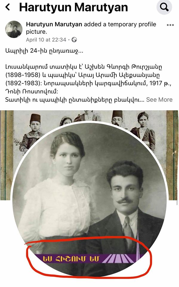 Հ.Գ. Լուսանկարում տեղադրում եմ Ցեղասպանության թանգարանի տնօրենի ՖԲ կոչը հիշել... «Պահանջել» բառը հանված է կարգախոսից: