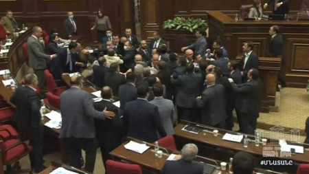 Հիշեցնենք, որ Իմ Քայլի ղեկավար Լիլիթ Մակունցը խորհրդարանի ամբիոնից առաջարկ հնչեցրեց ԼՀԿ-ի երեք պատգամավորներին վայր դնել մանդատները, խոսքը նշված երկուսի եւ Էդմոն Մարուքյանի մասին է, միայն այդ դեպքում իրենց մանդատներից կհրաժարվեն նաեւ Սասուն Միքայելյանը՝ միջադեպի հերոսը, եւ կողքից Մարուքյանին ապտակած Արտակ Մանուկյանն ու Վահե Ղղալումյանը: